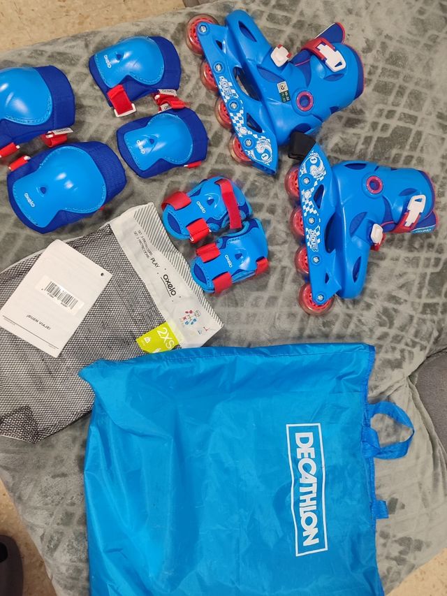 Patines de 4 ruedas para niño está como nuevo lo ha usado dos veces con todos los accesorios número 30-32