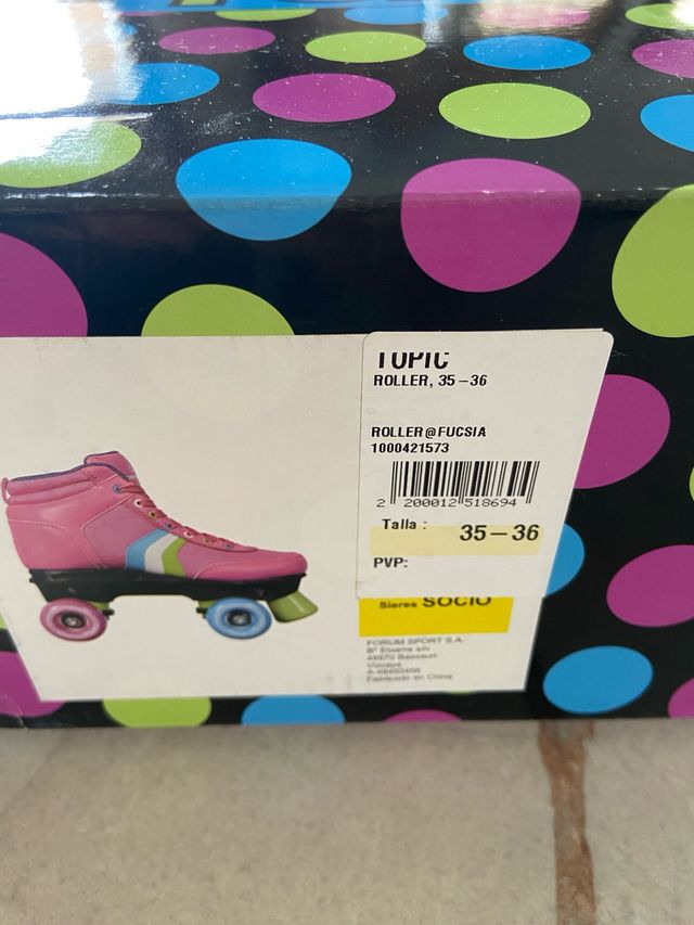 Patines de ruedas rosas, talla 35-36. - Diseño de la marca TOPIC. - Modelo ROLLER @FUCSIA. - Talla 35-36.