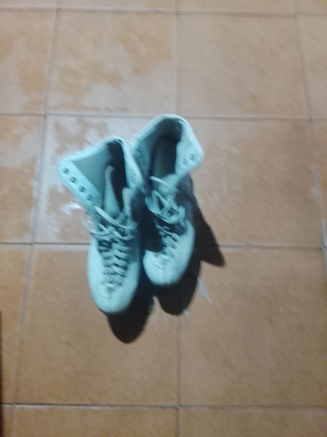 Par de patines en buen estado, listos para usarse. - Diseño clásico. - Cordones blancos.