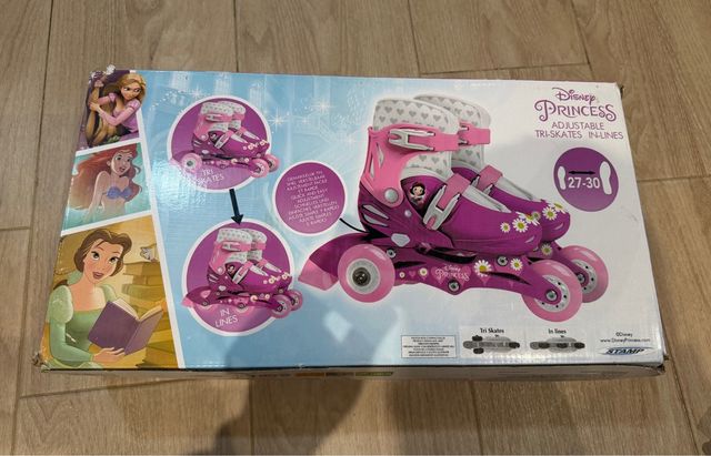 Detalles del productoPatines de línea ajustables de Disney Princess, ideales para niñas. Se pueden configurar en modo Tri Skates para mayor estabilidad o en In Lines para patinadores más avanzados.