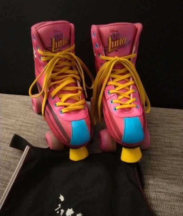 Detalles del productopatines Disney soy Luna número 36/37 poco uso bien conservado hay muchas fotos para visualizarlos bien ( lo único que tiene es el freno algo gastado que se puede comprar y cambiar ) por lo demás puedes mirar las fotos son muy cómodos de regalo pongo la bolsa para transportar de la marca oxelo en mi perfil hay variedad de cosas también mira y pregunta sin compromiso hago envíos.