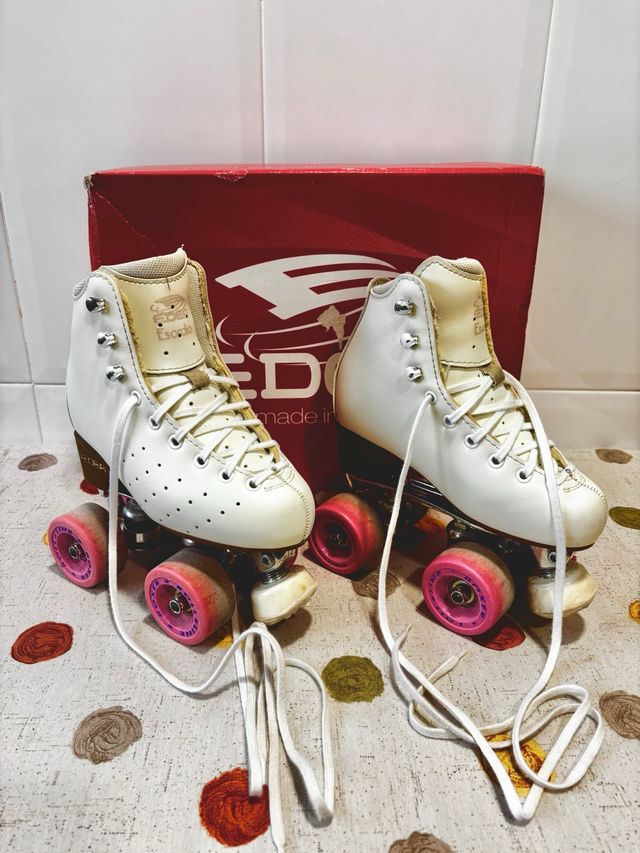 Patines de la marca EDEA, botas Esordio. Siempre usados con fundas y en pista. - Color blanco. - Ruedas roller line boxer. - Cordones blancos.