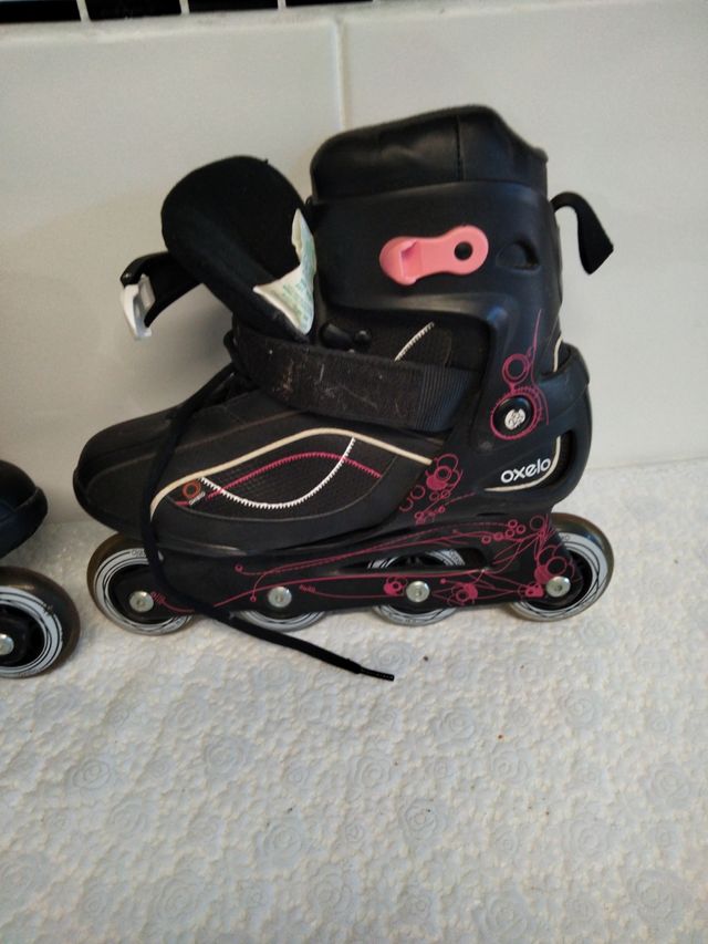 Patines en linea marca oxelo talla 38'5 velcros ajustables, ruedas nuevas, plantillas nuevas. SE REGALA rodilleras y muñequeras casi sin usar