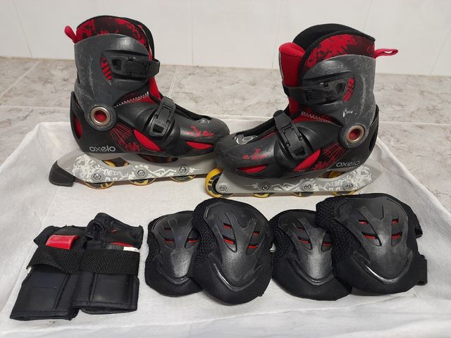 Patines marca oxelo talla 34/36 con protecciones para codos, rodillas y manos