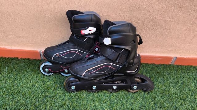 Patines en línea Oxelo , en buen estado. Ideales para iniciarse en el patinaje. Talla 36,5. - Color negro con detalles rosas. - Talla ajustable. - Muy poco uso