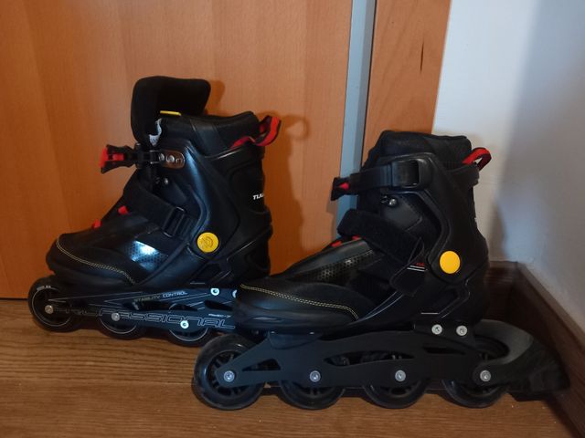 Detalles del productoPatines en línea profesionales AbEC - 7, ruedas de 80mm B2A, venta incluyendo su propia bolsa y protecciones (muñequeras, coderas y rodilleras). Talla 38/39. Utilizado una vez después de su compra, en venta por desuso.