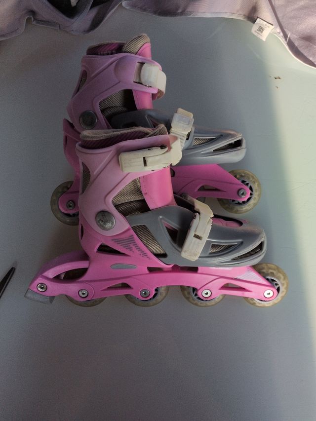 Patines en línea ajustables para niña, perfectos para acompañar su crecimiento. - Diseño en color rosa. - Cierre con velcro y hebilla.