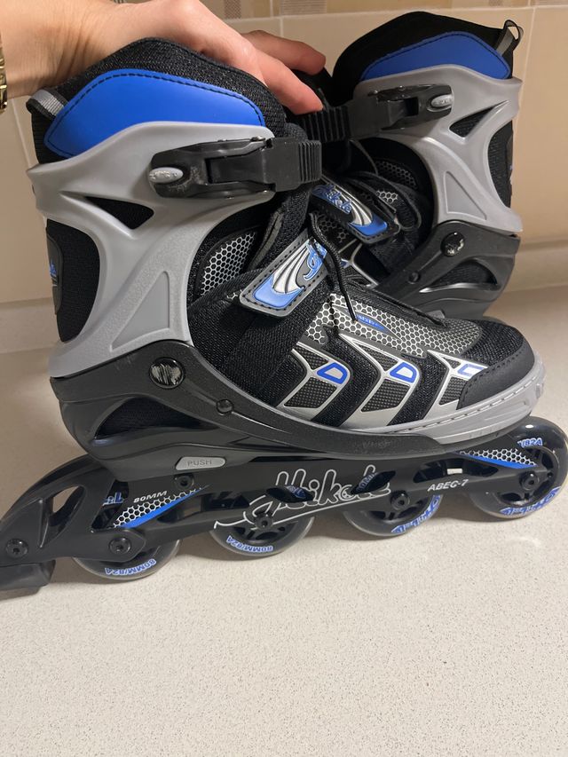 Detalles del productoPatines en línea con diseño moderno y detalles en azul y gris. Perfectos para iniciarse en el patinaje.