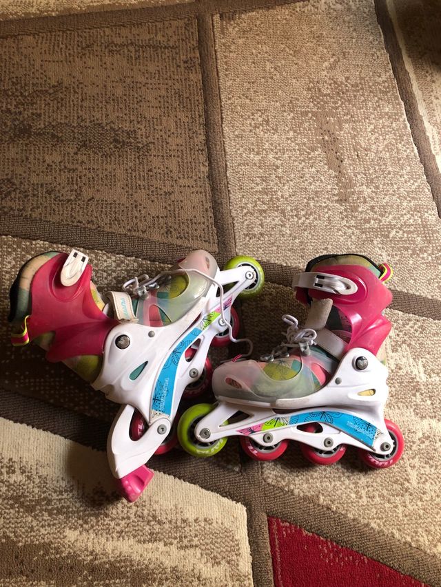 Detalles del productoPatines en línea con un diseño llamativo y colorido, perfectos para iniciarse en el patinaje.