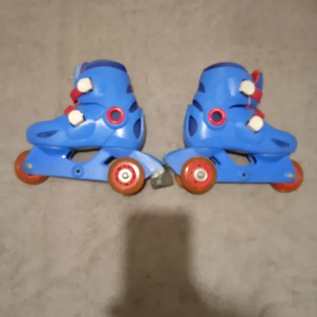 Patines en línea de color azul, diseñados para niñ@s. - Talla 26-27. - Color azul vibrante. - Cierre con velcro y hebilla. - Ruedas de goma.