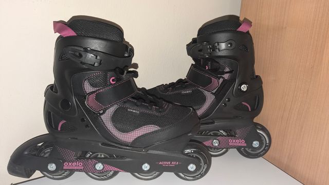 Patines en linea prácticamente sin uso núm 38 Bolsa de transporte, protecciones y casco. Todo como nuevo.