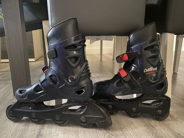 Patines en línea marca California. - Diseño en color negro. - Cierres de hebilla para un ajuste seguro.