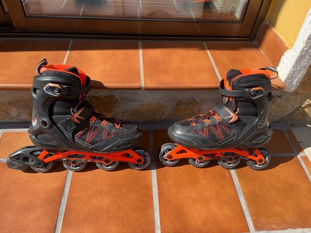 Patines en línea de Decathlon marca Oxelo. Talla 46, de 29,5cm (equivale a talla de zapato 42,5-43). Casi no tienen uso.