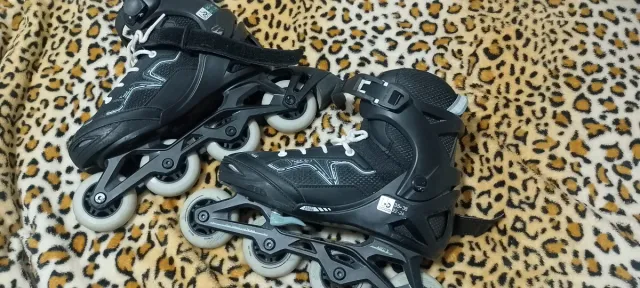 Patines en línea negros de Decathlon, usados solo una vez. Se encuentran en excelente estado. - Talla: 35-38 - Cierre con velcro y hebilla - Ruedas blancas