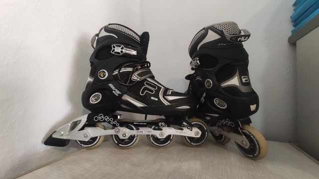 Detalles del productoVendo patines en linea de la marca FILA modelo Máster Wave. Talla 45 EU. Muy poco uso, aun conserva la pegatina de la talla. Se puede comprobar su uso en el desgaste de las ruedas que es mínimo, estás son aún las originales. Incluyo kit de protecciones.