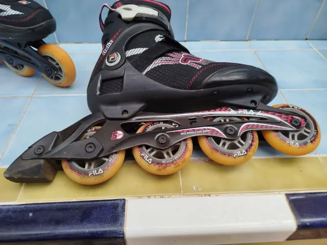 Patines en linea Fila, negro y rosa, totalmente nuevos, tiene 3 puestas. Profesionales ruedas de goma, del 38 al 40 son preciosos.