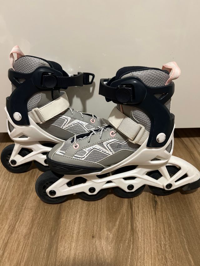 Patines en línea grises y blancos