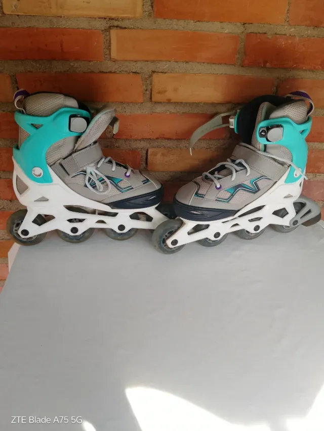 Patines en línea grises y turquesa