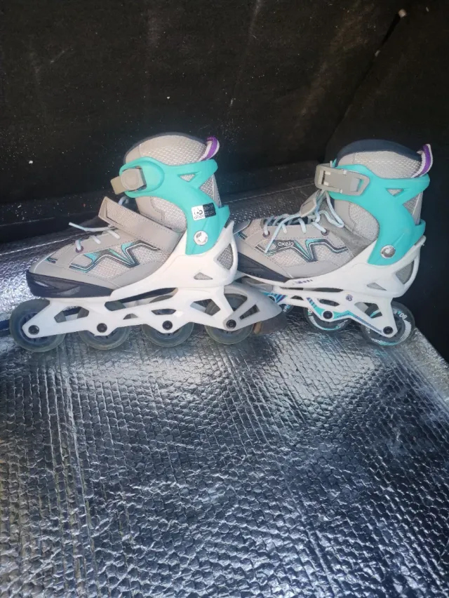 Patines en línea grises y turquesa