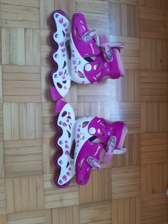 Set de patines en línea para niña con diseño de Hello Kitty. Perfectos para iniciarse en el patinaje.