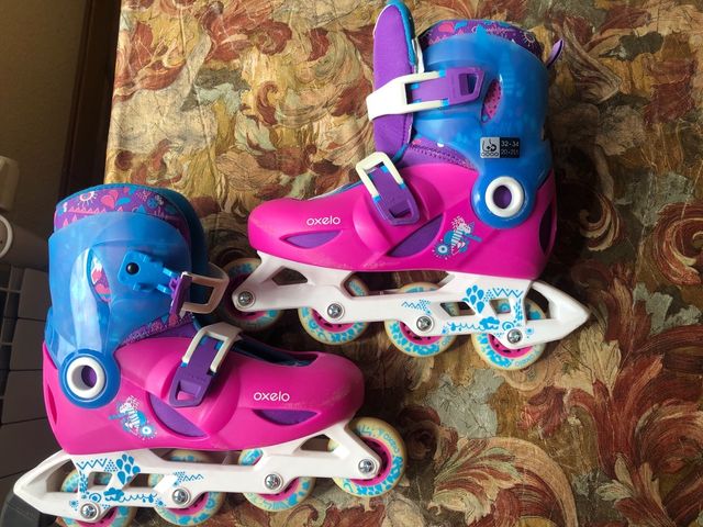 estan muy poco usados. Tienen roces tipicos del uso propio de haber aprendido a patinar con ellos. Se regala bolsa de transporte.