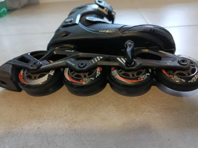 Patines en línea para niños, ideales para iniciarse en el patinaje. - Ruedas de 70mm y 80mm. - Cierre de velcro y hebilla. - Marco resistente.