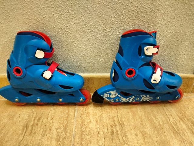 Detalles del productoPatines en línea infantiles de Decathlon, marca Oxelo Play 3. Ruedas en perfecto estado. Tienen los rayones propios de uso. Ideales para aprendizaje. Color azul. Talla de la 32 a la 34. Estos patines son perfectos para trabajar la motricidad y el equilibrio con suavidad.