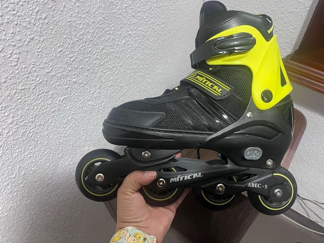 Detalles del productoPatines en línea de la marca MITICAL, diseñados en color negro con detalles en amarillo. numero 39