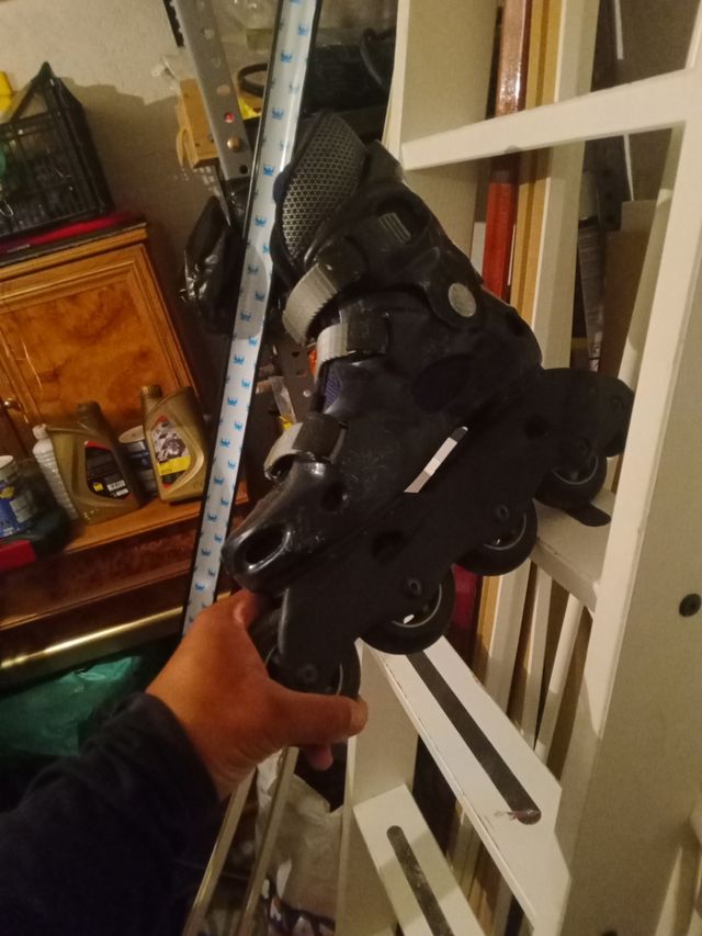Se venden patines en línea de color negro. Son cómodos y resistentes. - Cierre de velcro y hebilla. - Ruedas de poliuretano.