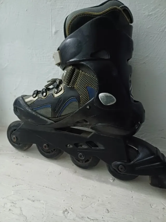 Detalles del productoPatines en línea con un diseño deportivo en colores negro y gris. Cuentan con un sistema de cierre de cordones y hebilla para un ajuste seguro.