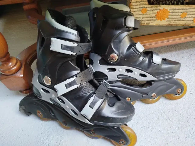 Detalles del productoPatines en línea de color negro y gris, ideales para patinar. Bastante usados, ideales para iniciarse o probar. Precio negociable