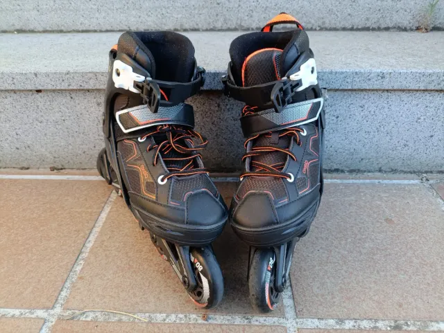 Patines en línea negros y naranjas