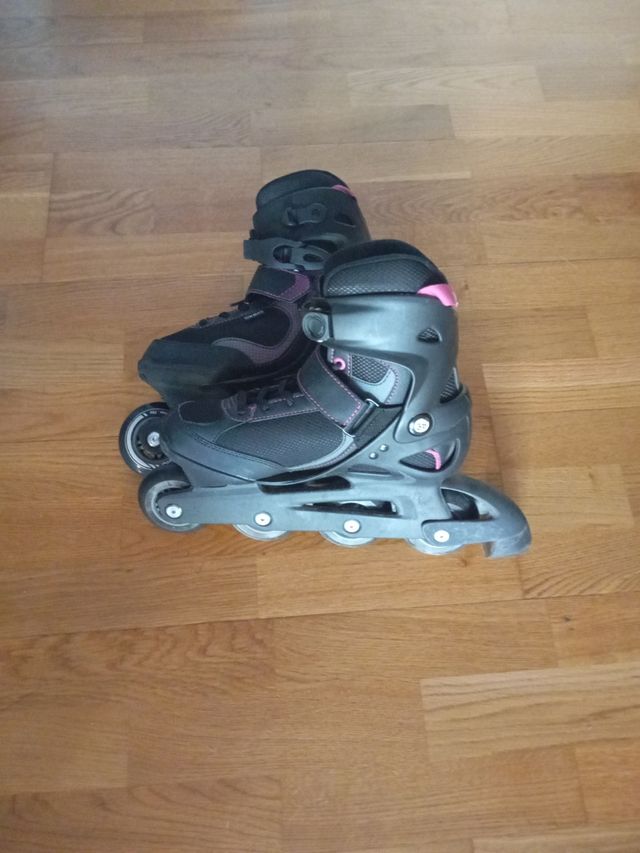 Detalles del productoPatines en línea con un diseño moderno y detalles en rosa.