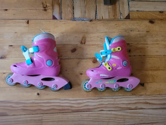 Detalles del productoPatines en línea rosas de Decathlon para niña. Perfectos para iniciarse en el patinaje. Cierre de velcro y hebilla y ruedas de poliuretano. Talla 29. Usados pero en buen estado.