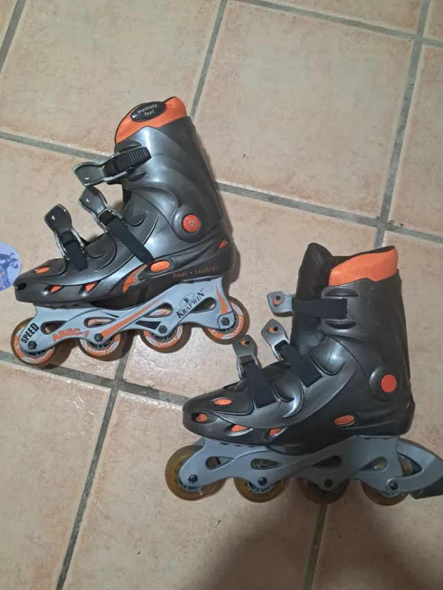 Patines en línea nuevos, talla 41. Listos para estrenar. - Diseño moderno en gris y naranja. - Cierres de seguridad. - Ruedas de alta resistencia.