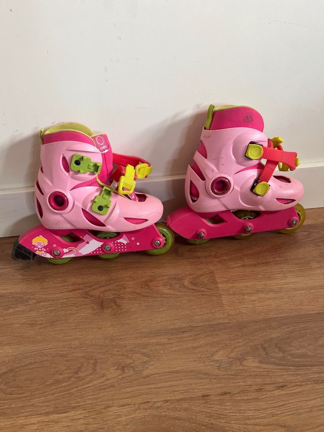 Detalles del productoSet de patines en línea de color rosa de Oxelo.