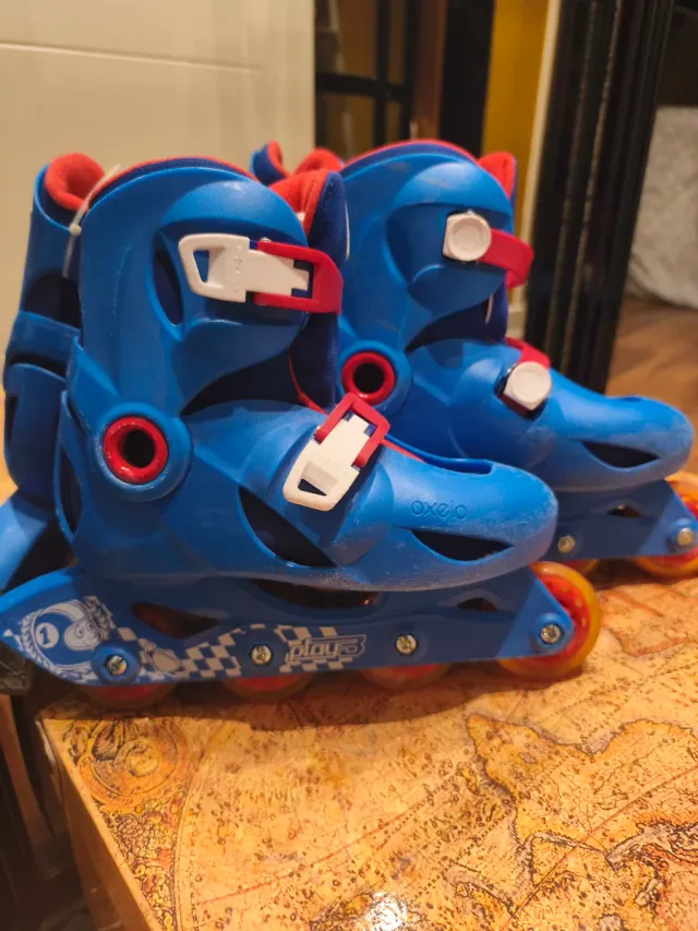 Detalles del productoPatines en línea de la marca Oxelo en color azul con detalles en rojo y blanco.