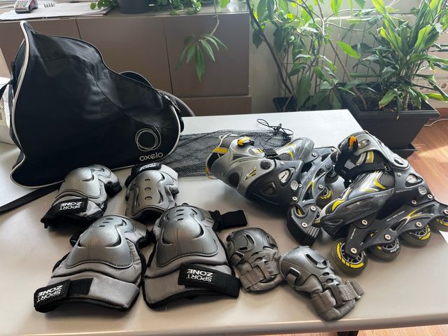 Detalles del productoSet de patines en línea Oxelo, ideales para iniciarse en el patinaje. Incluye bolsa de transporte y protecciones.