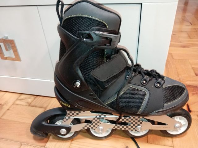 Detalles del productoPatines en línea de la marca Oxelo, comprados en Decathlon. Diseñados para patinaje.
