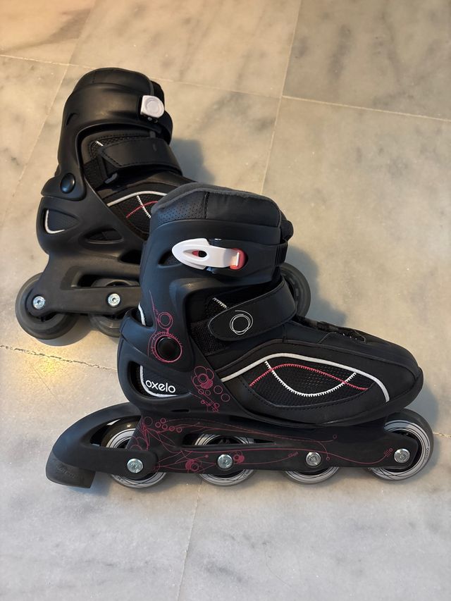 Detalles del productoPatines en línea de la marca Oxelo, talla 38 + protecciones completas (manos, codos y rodilla) talla S