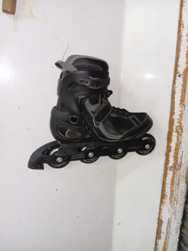 Patines en línea Oxelo talla 45 con ruedas de 76mm. - Cierre con velcro y cordones. - Diseño deportivo en negro y gris.