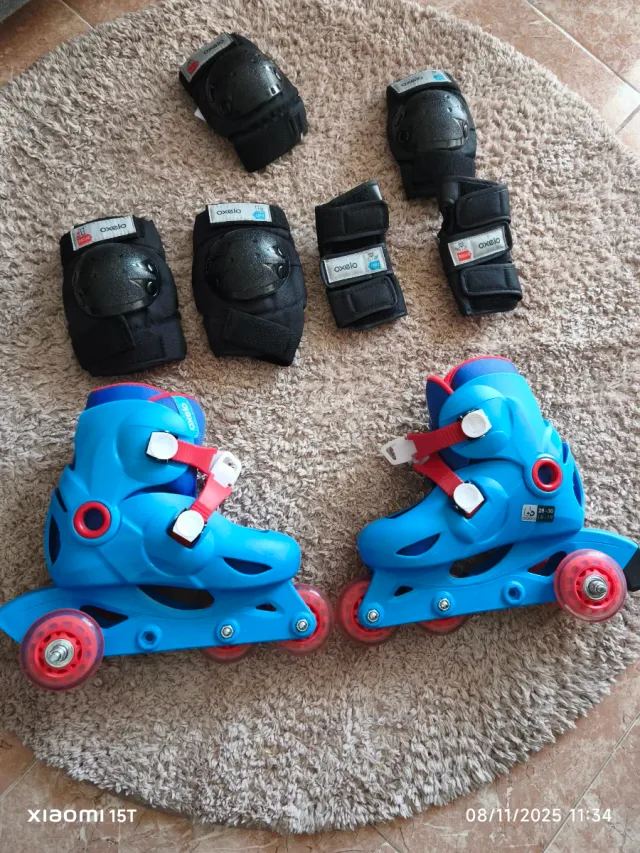Detalles del productoSet de patines en línea Oxelo para principiantes, talla 28-30. Incluye protecciones para mayor seguridad.