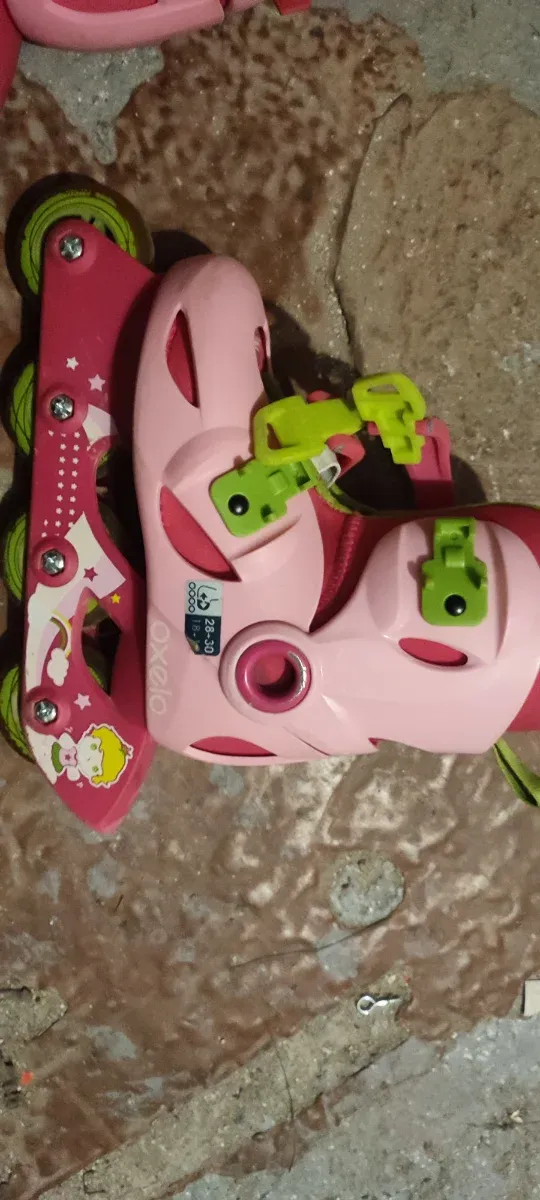 Detalles del productoPatines en línea de la marca Oxelo, color rosa y con un diseño infantil con estrellas y arcoíris.