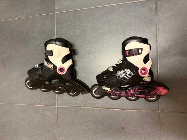Detalles del productoSe vende pack de patines en línea Oxelo en buen estado, rodilleras, coderas y cascos, ideales para iniciarse en el patinaje.