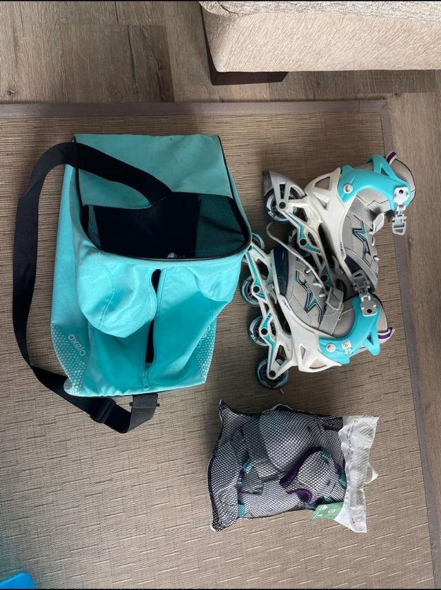 Detalles del productoSet de patines en línea Oxelo, ideales para iniciarse. Incluye bolsa de transporte y protecciones.