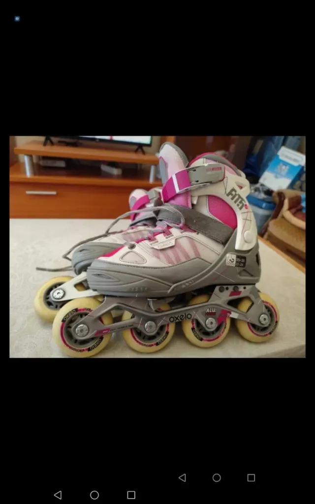 Patines en línea Oxelo en color blanco, rosa y gris. - Talla ajustable de 36 a 38. - Ruedas de 76mm. - Freno integrado.