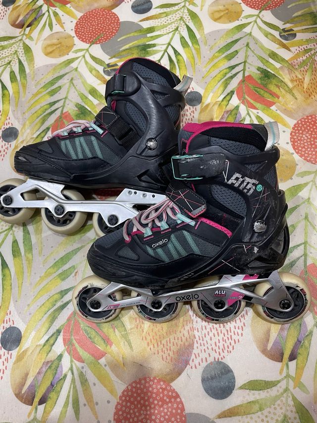 Detalles del productoSe venden patines en línea Oxelo en color negro, rosa y verde menta. Son cómodos y resistentes.