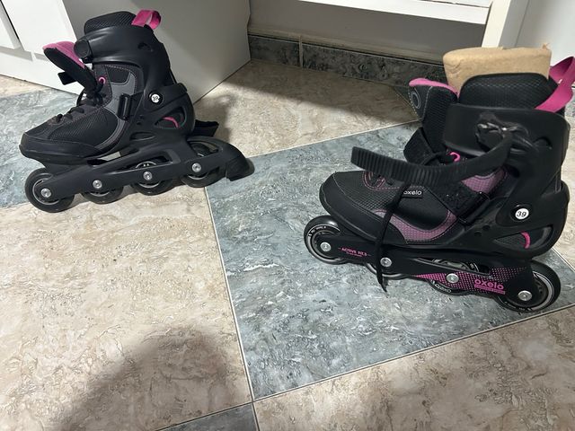 Detalles del productoPatines en línea Oxelo en color negro y rosa, talla 39. Están nuevos, sin estrenar.