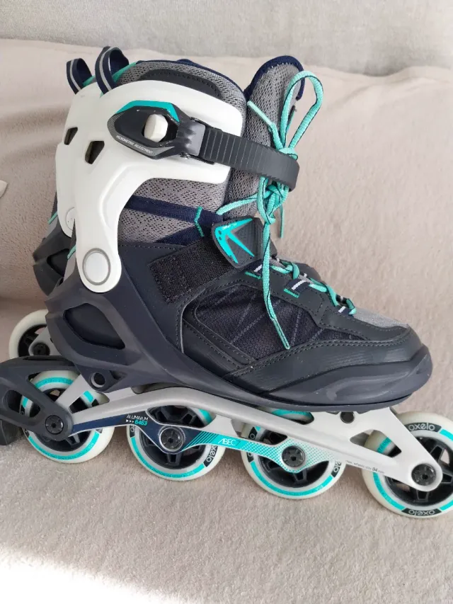Patines en línea Oxelo talla 40, comodidad y rendimiento. Cierre con hebilla y velcro. - Ruedas de 90 mm. - Chasis de aluminio.No negociable!