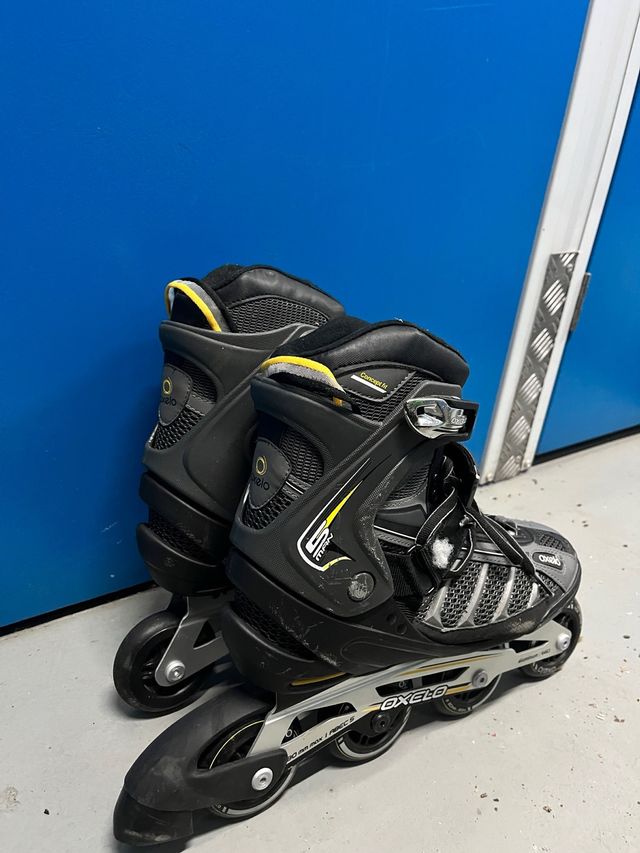 Detalles del productoPatines en línea Oxelo Tarmak en color negro y amarillo. Diseñados para patinaje.